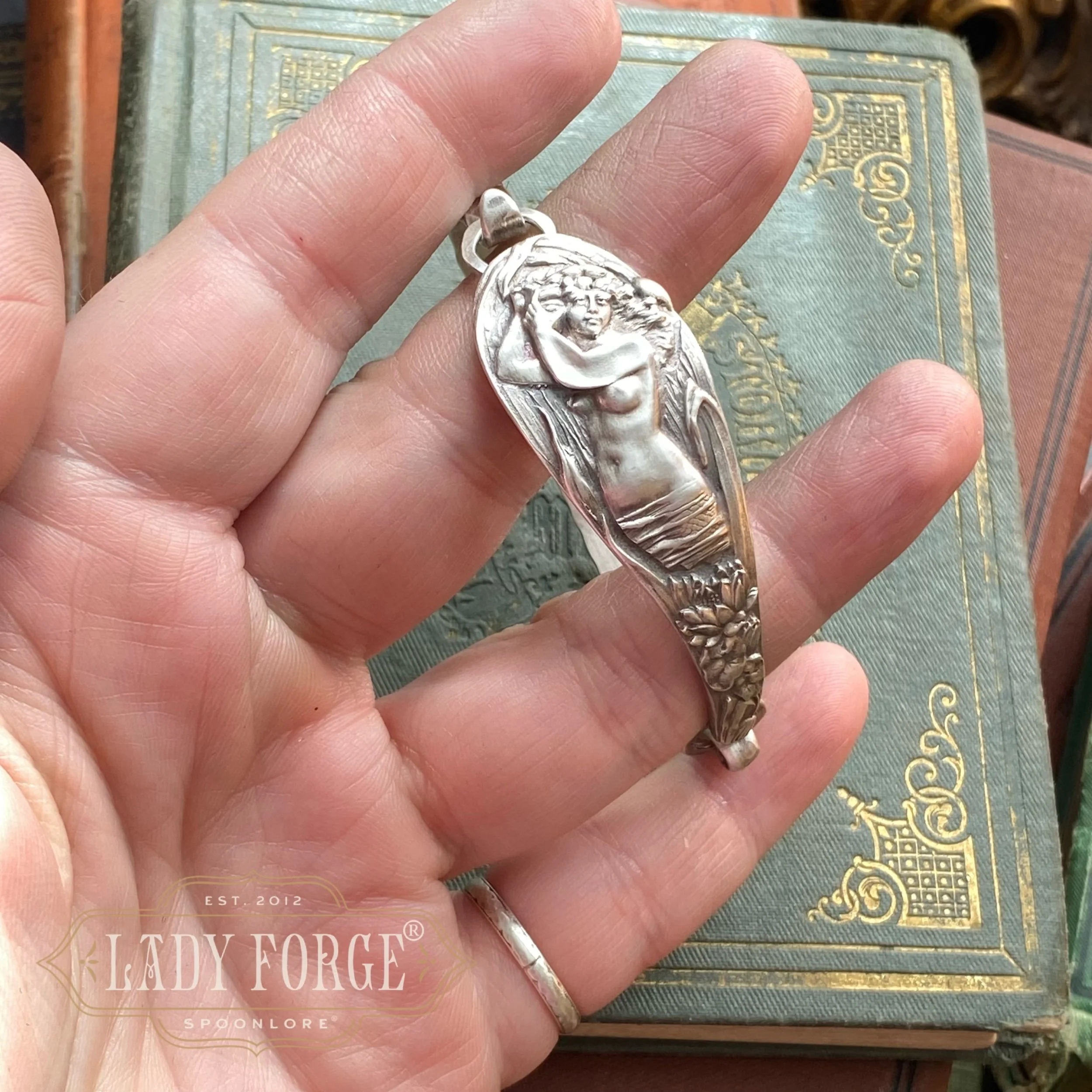 I love spoon jewelry. And I love hunting for the most beautiful spoons to make it! Spoon jewelry is a little wearable piece of history allowing the story and beauty of the pattern to be displayed and treasured, rather than being forgotten in a drawer or melted down as many of these antique beauties are.