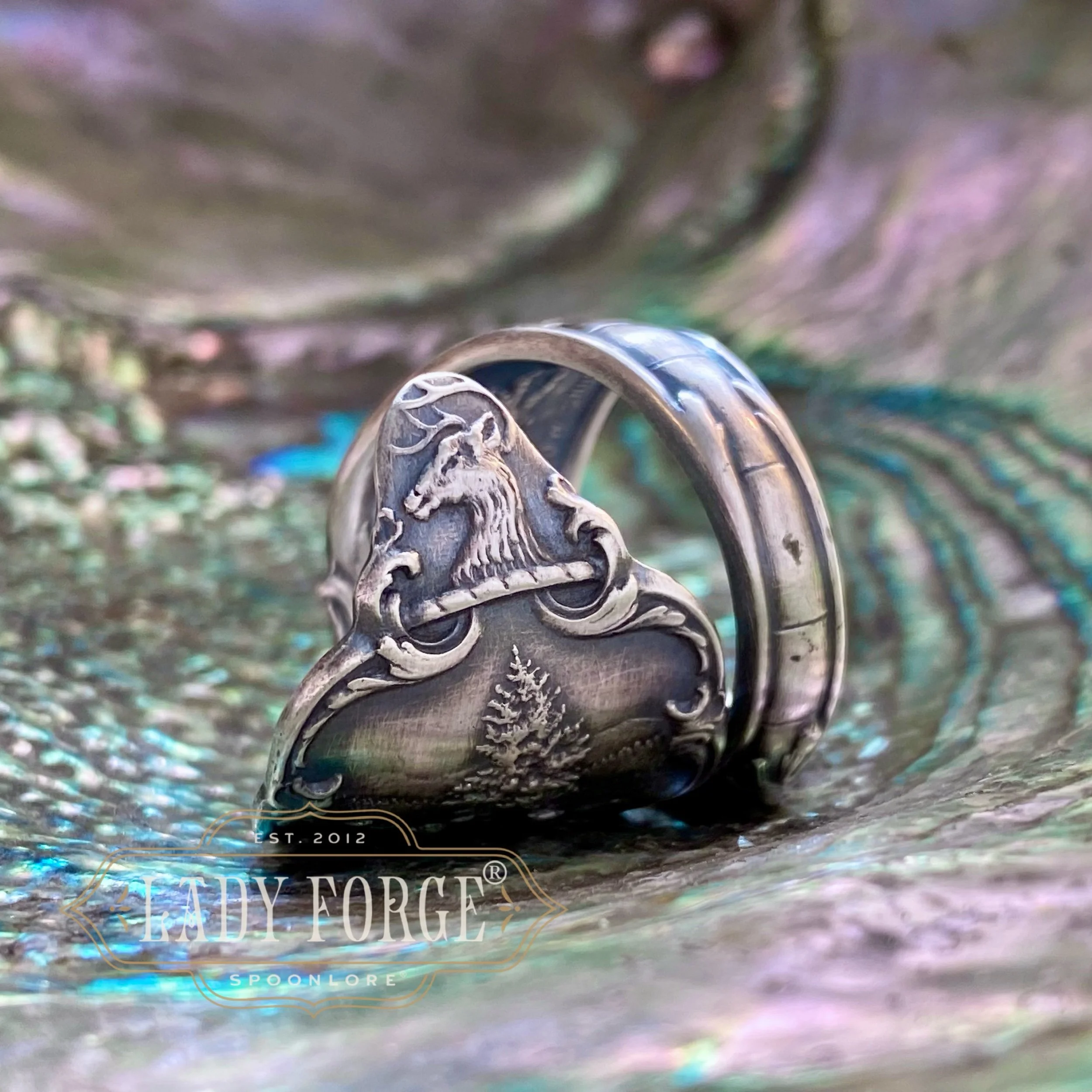 This sterling spoon ring was made from the Vermont pattern designed by the Wallace Co between 1890-1920