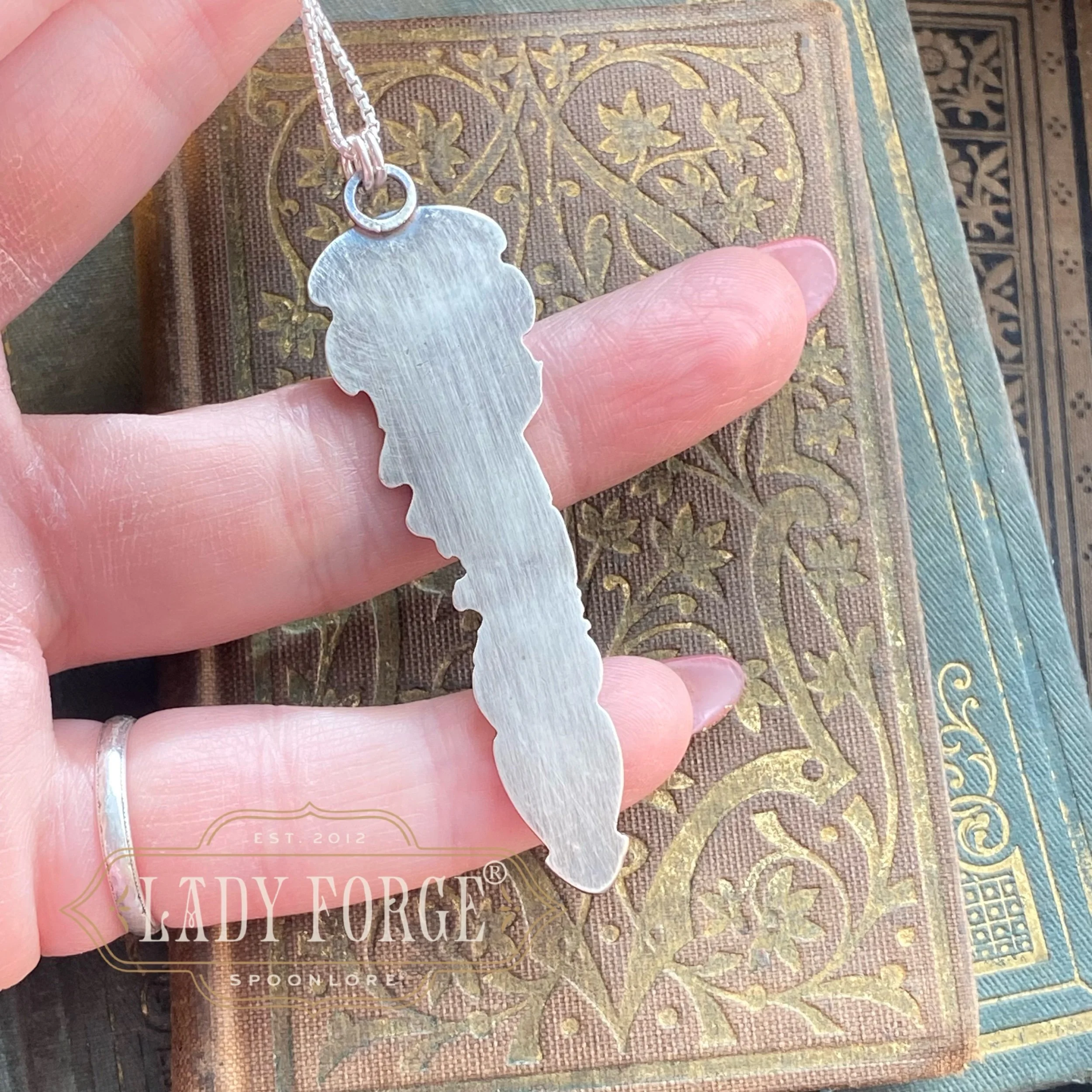 I love spoon jewelry. And I love hunting for the most beautiful spoons to make it! Spoon jewelry is a little wearable piece of history allowing the story and beauty of the pattern to be displayed and treasured, rather than being forgotten in a drawer or melted down as many of these antique beauties are.