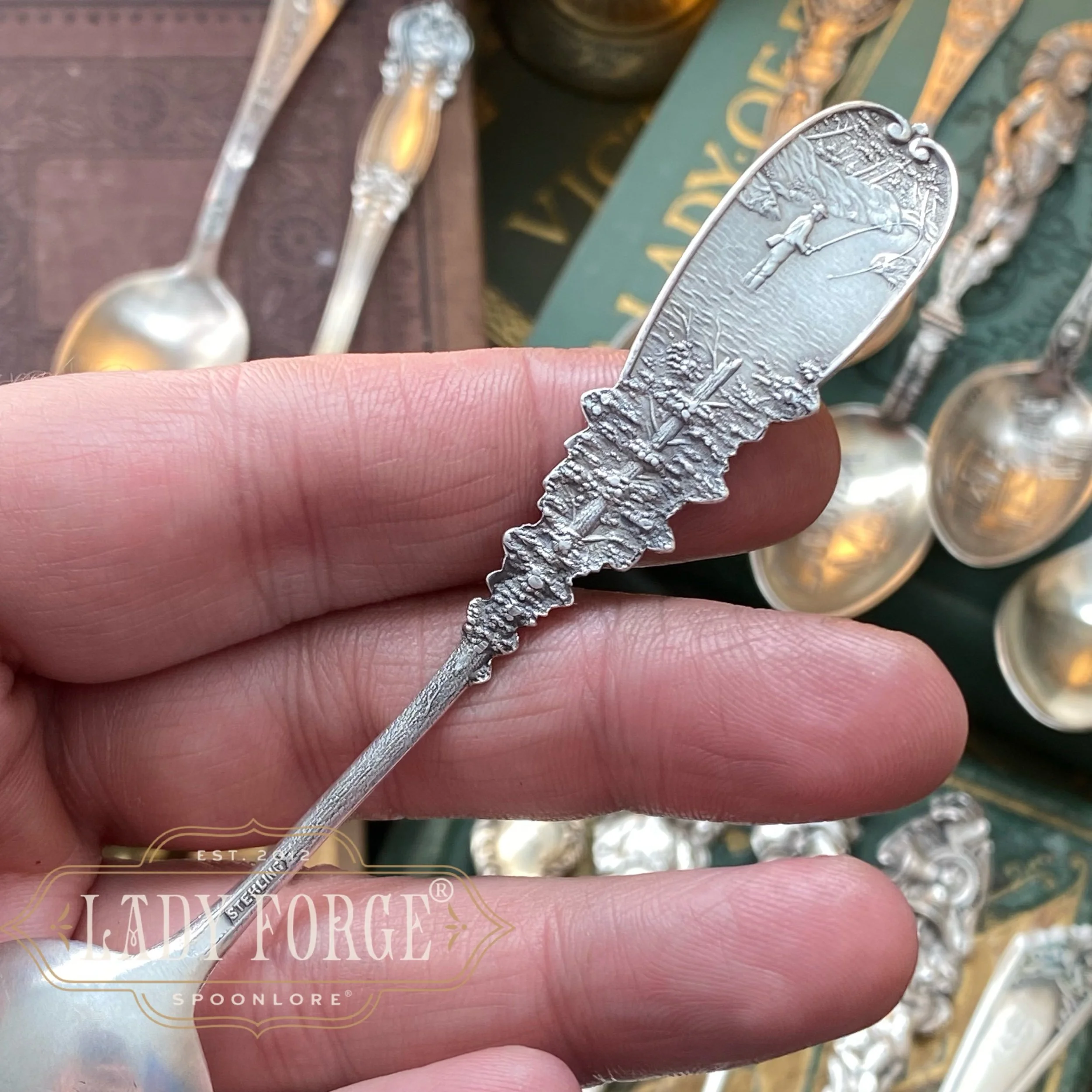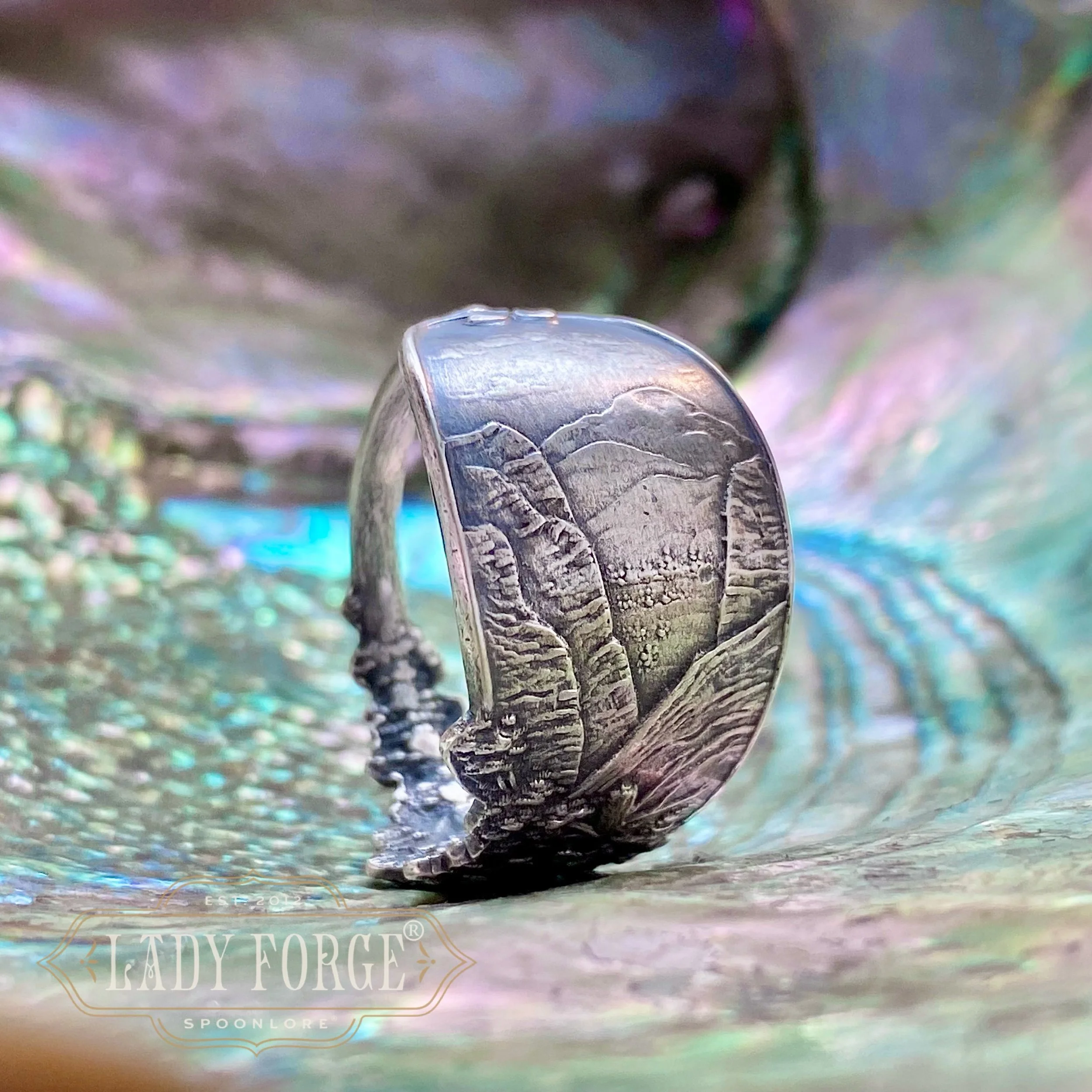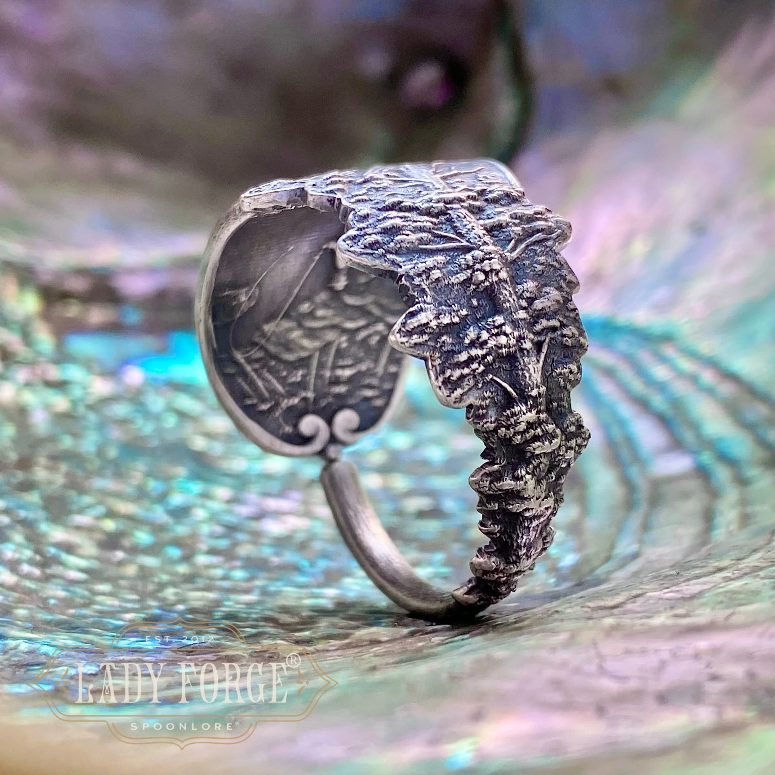 This sterling spoon ring was made from the Mointain Lake Fly fishing pattern designed by an unknown American maker (unmarked) likely between 1900-1940
