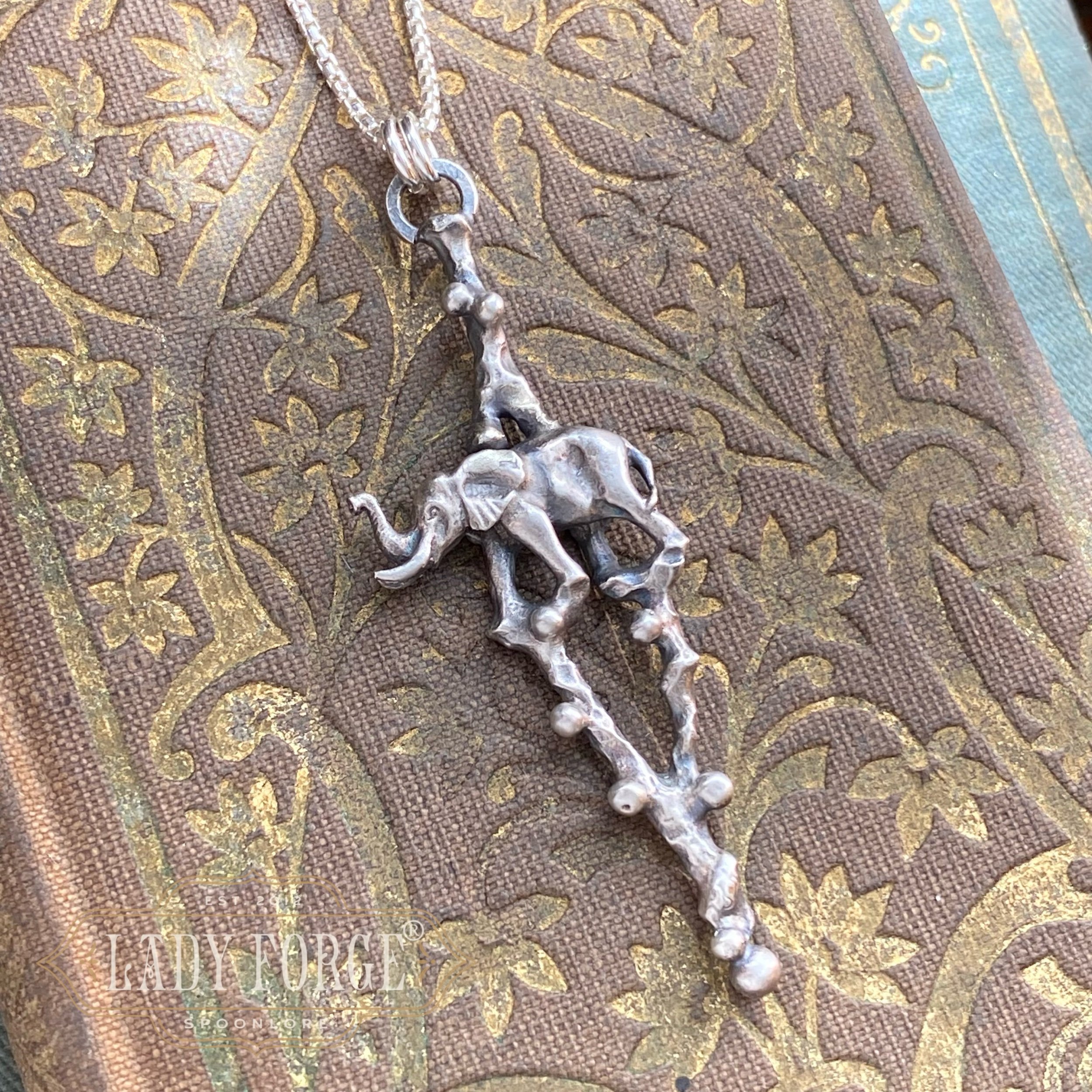 A sterling silver necklace made from the Elephant pattern likely designed in South Africa between 1940-1960