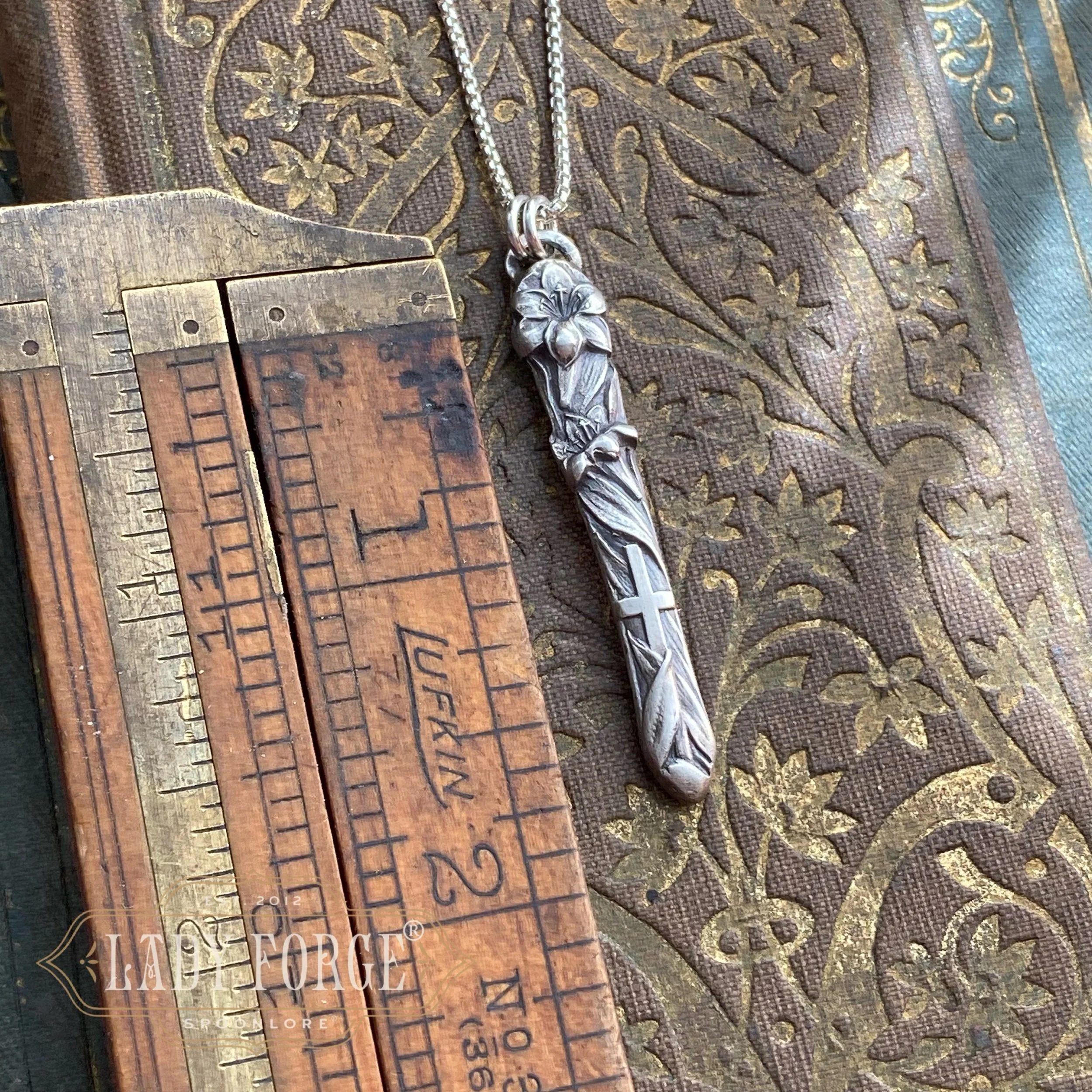 I love spoon jewelry. And I love hunting for the most beautiful spoons to make it! Spoon jewelry is a little wearable piece of history allowing the story and beauty of the pattern to be displayed and treasured, rather than being forgotten in a drawer or melted down as many of these antique beauties are.