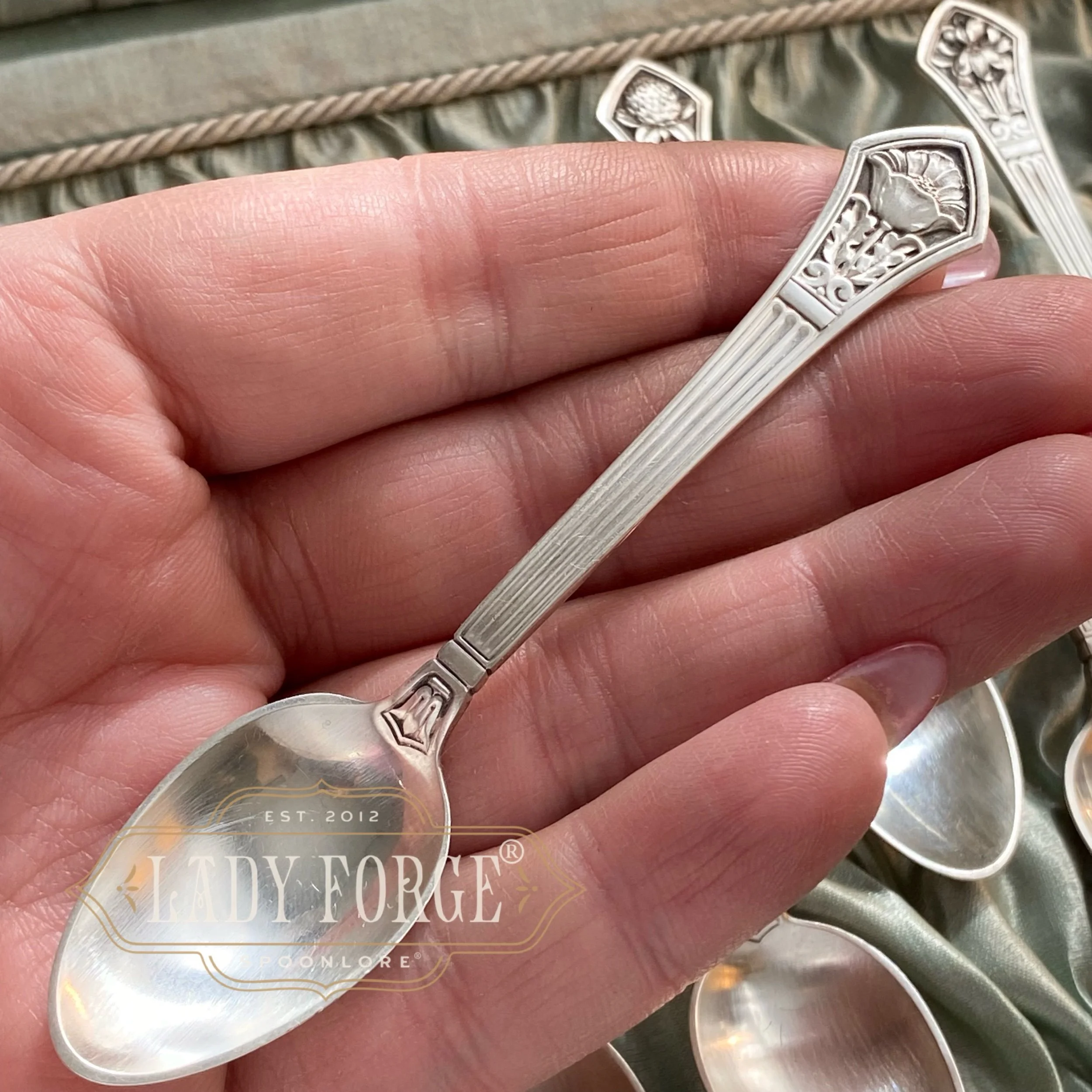 Using the original sterling silverware means each piece is not only beautiful in design, but full of indications that it has lived life. Maybe a faded monogram or little wear spots - I enjoy thinking about the places they have been and who might have held them 100 years ago. Each piece is, therefore, truly unique.