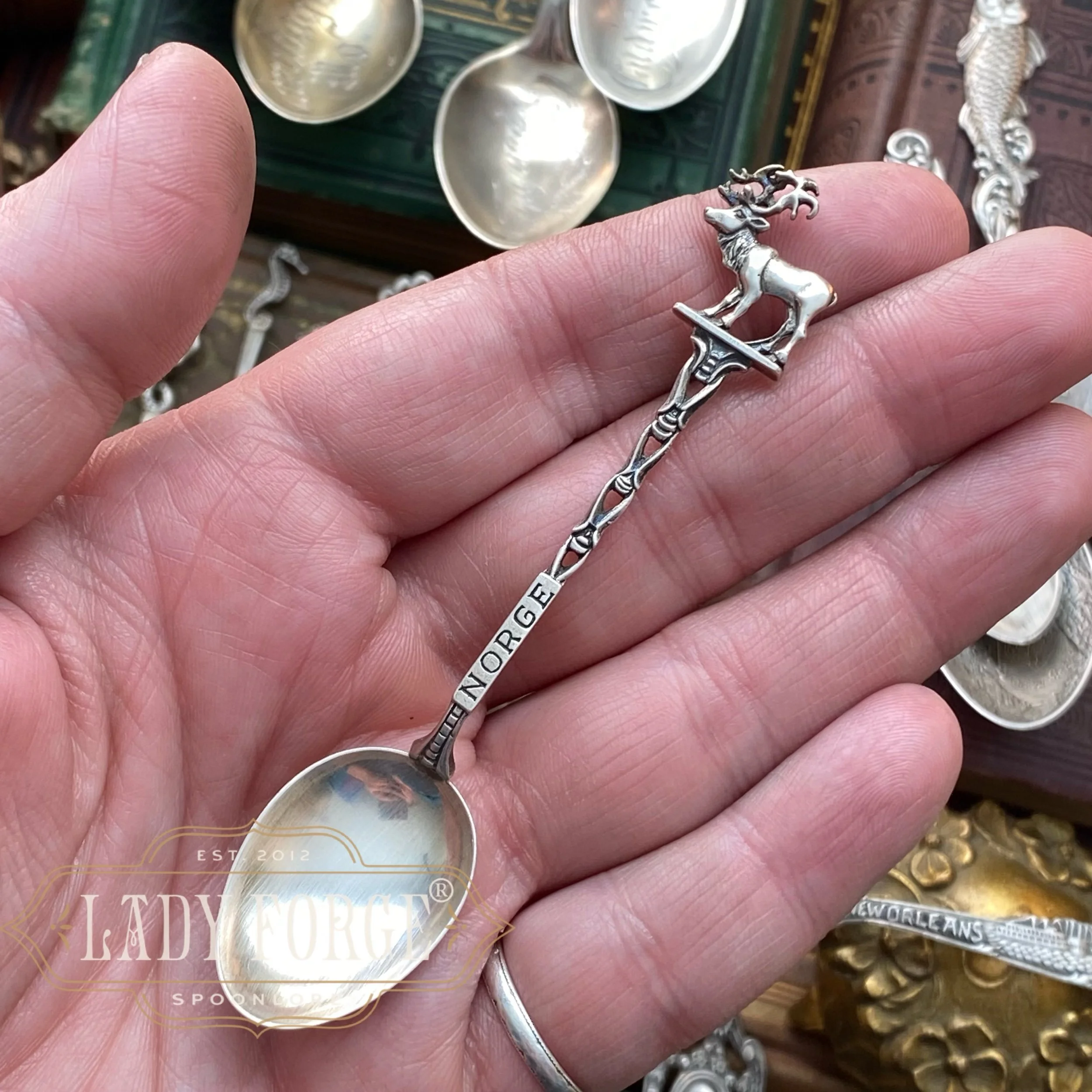 I love spoon jewelry. And I love hunting for the most beautiful spoons to make it! Spoon jewelry is a little wearable piece of history allowing the story and beauty of the pattern to be displayed and treasured, rather than being forgotten in a drawer or melted down as many of these antique beauties are.