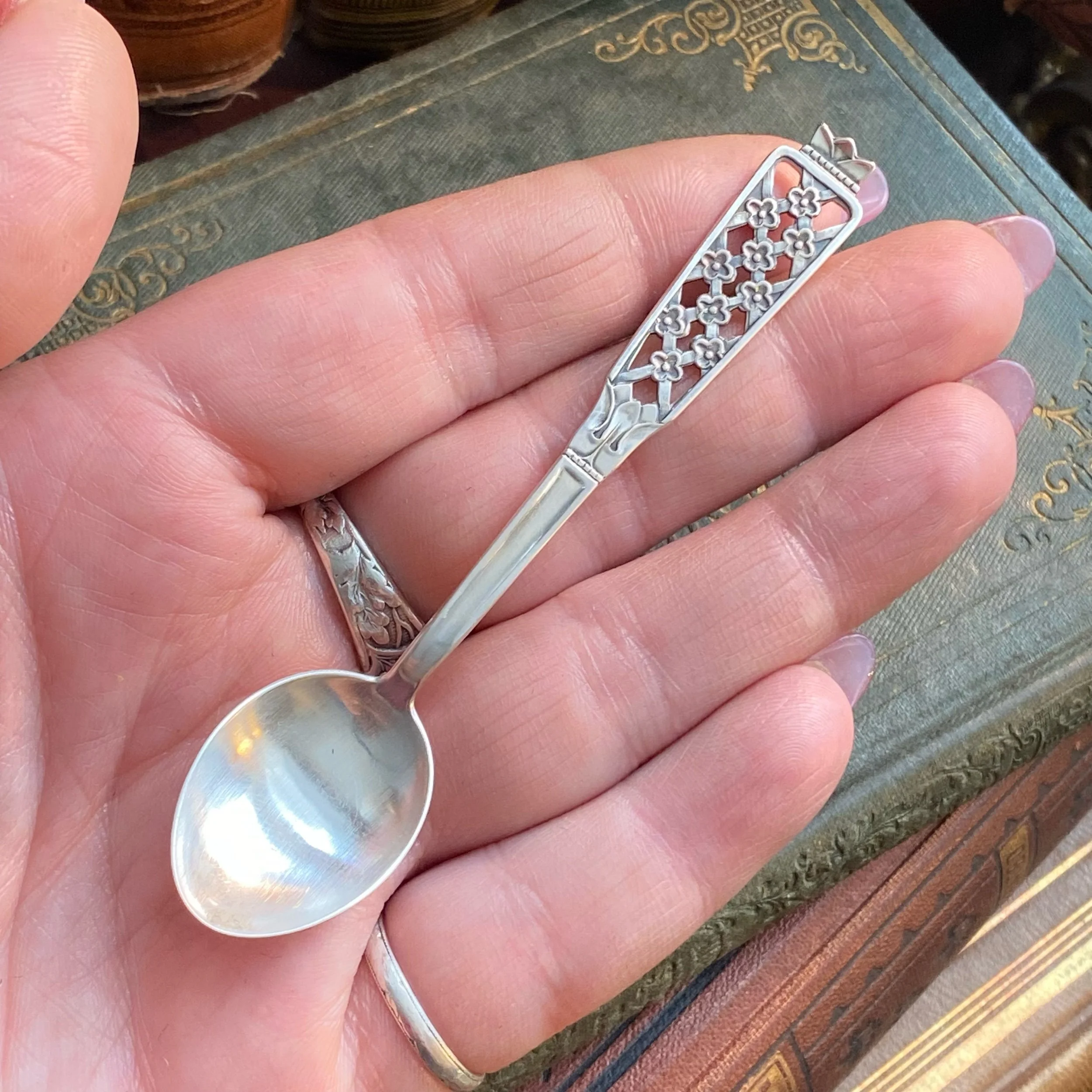 Using the original sterling silverware means each piece is not only beautiful in design, but full of indications that it has lived life. Maybe a faded monogram or little wear spots - I enjoy thinking about the places they have been and who might have held them 100 years ago. Each piece is, therefore, truly unique. I have discovered more than one of some of these spoon patterns, so each piece will come with its own character and story, varying slightly on little wear spots and marks - There will not be two that are exactly the same!