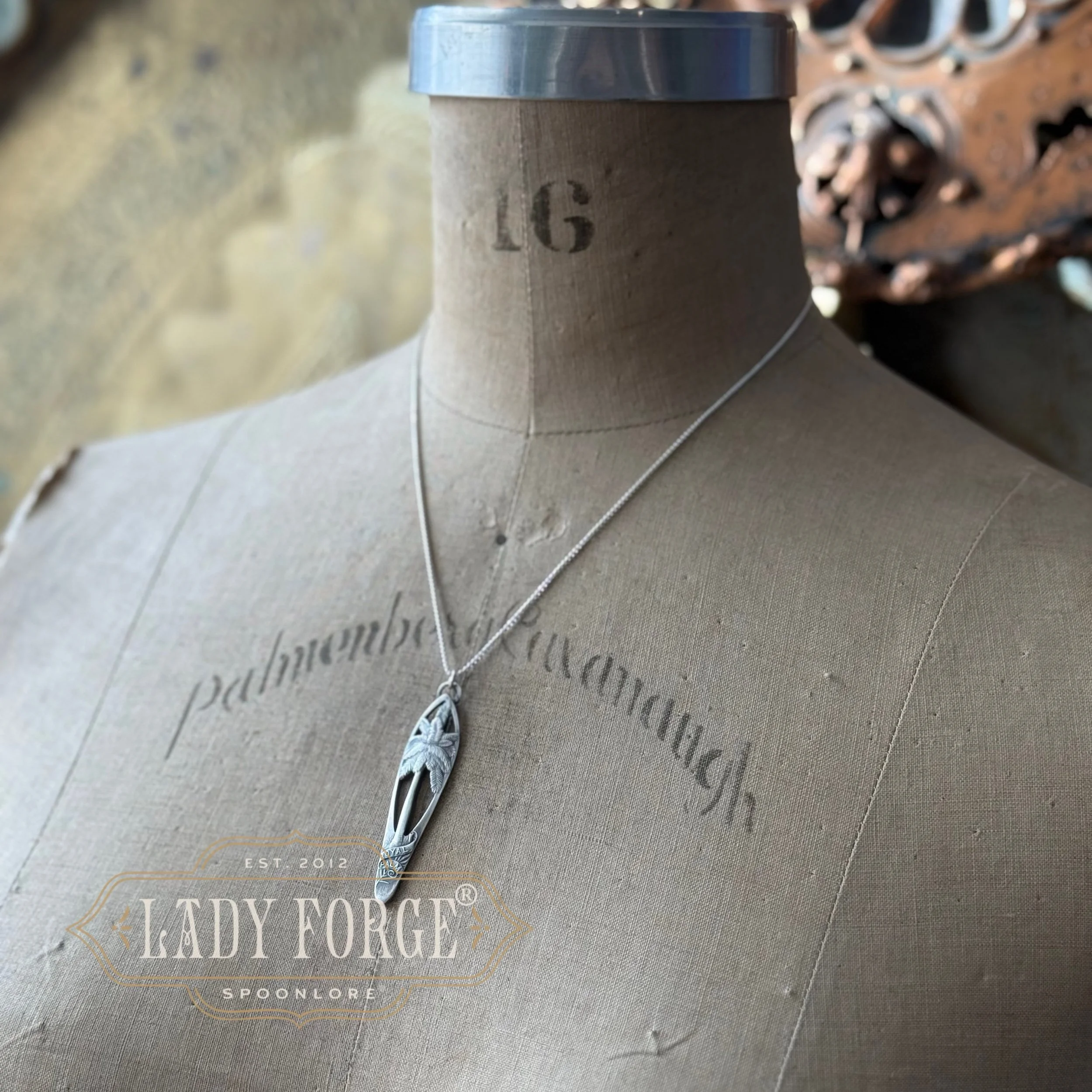 I love spoon jewelry. And I love hunting for the most beautiful spoons to make it! Spoon jewelry is a little wearable piece of history allowing the story and beauty of the pattern to be displayed and treasured, rather than being forgotten in a drawer or melted down as many of these antique beauties are.