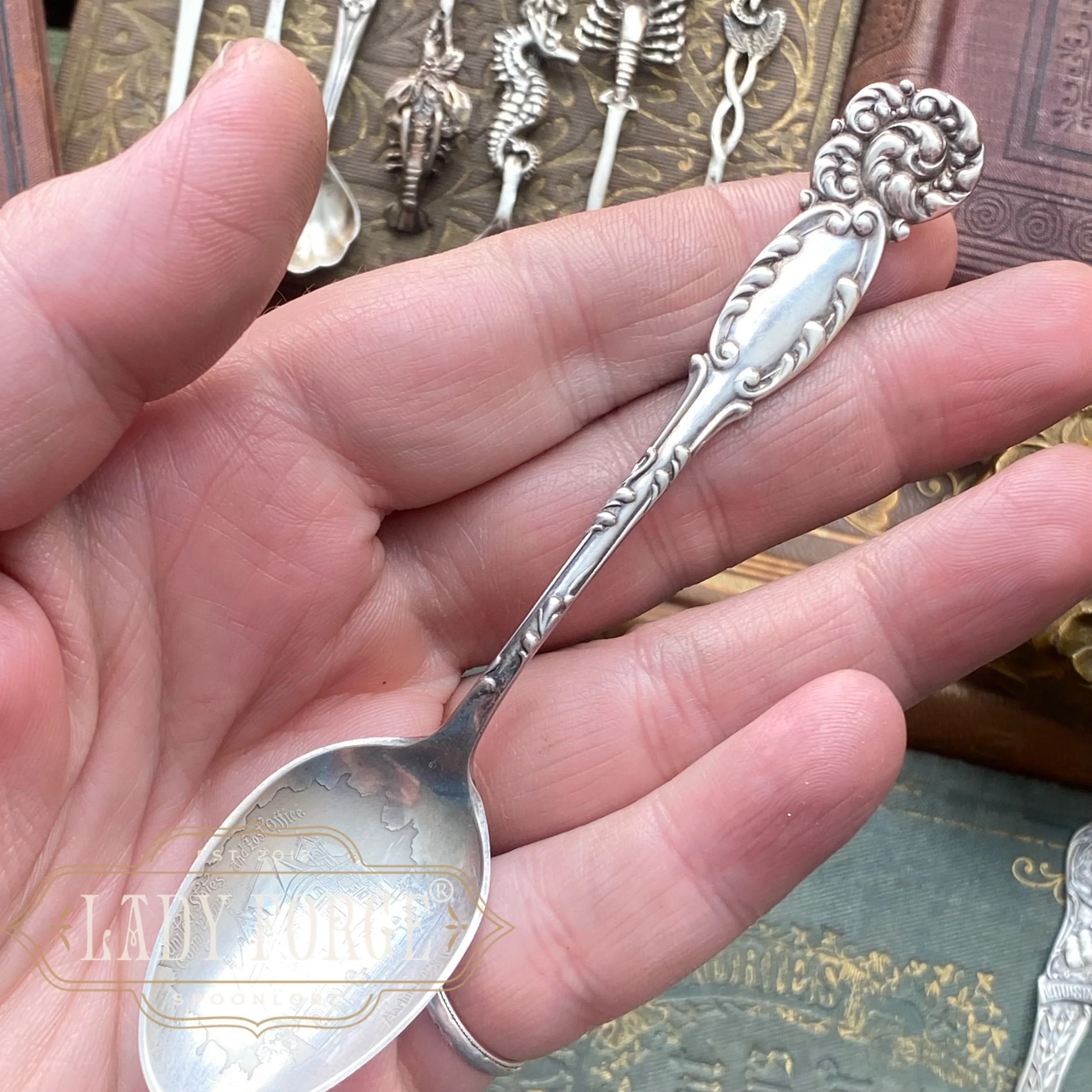 I love spoon jewelry. And I love hunting for the most beautiful spoons to make it! Spoon jewelry is a little wearable piece of history allowing the story and beauty of the pattern to be displayed and treasured, rather than being forgotten in a drawer or melted down as many of these antique beauties are.
