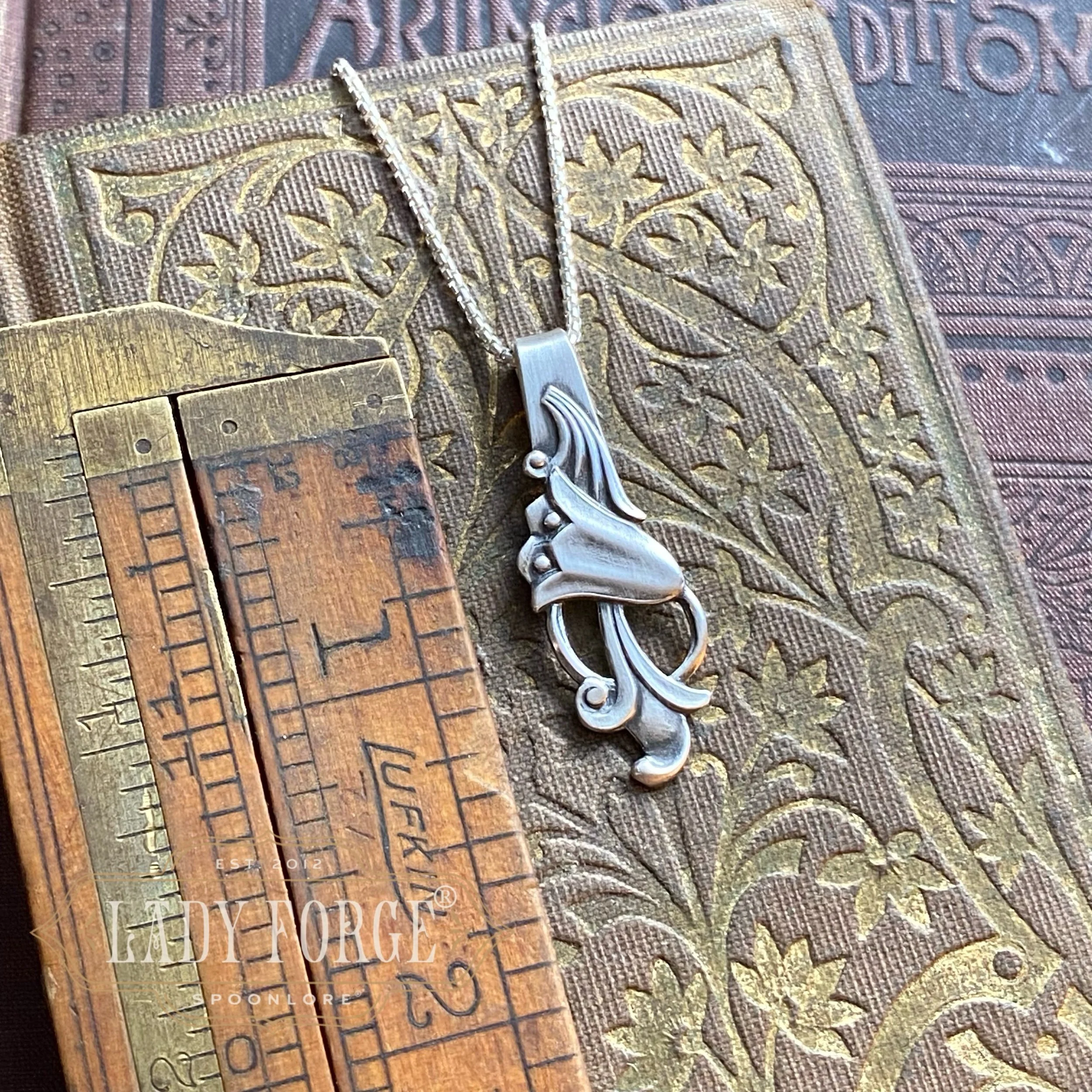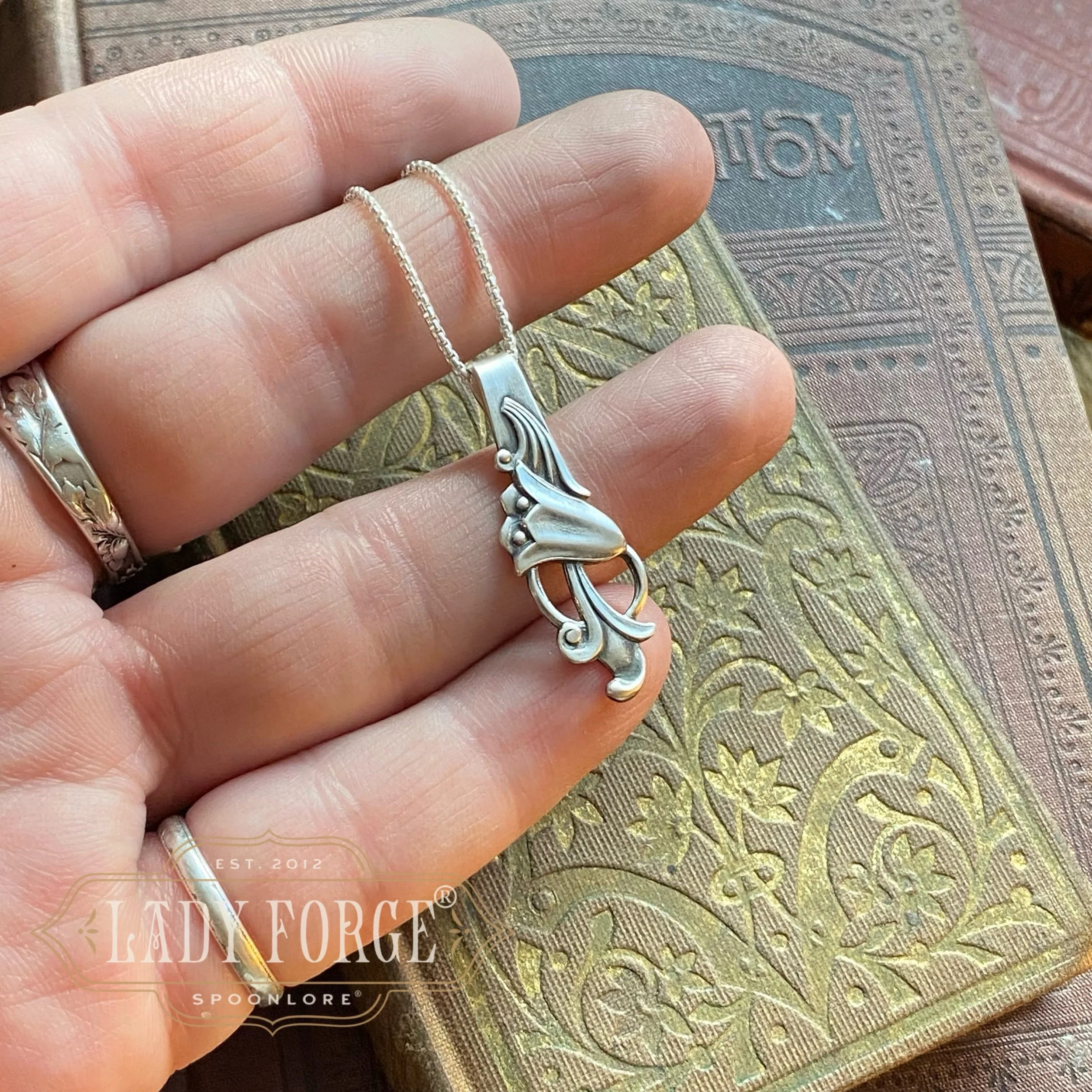 I love spoon jewelry. And I love hunting for the most beautiful spoons to make it! Spoon jewelry is a little wearable piece of history allowing the story and beauty of the pattern to be displayed and treasured, rather than being forgotten in a drawer or melted down as many of these antique beauties are.