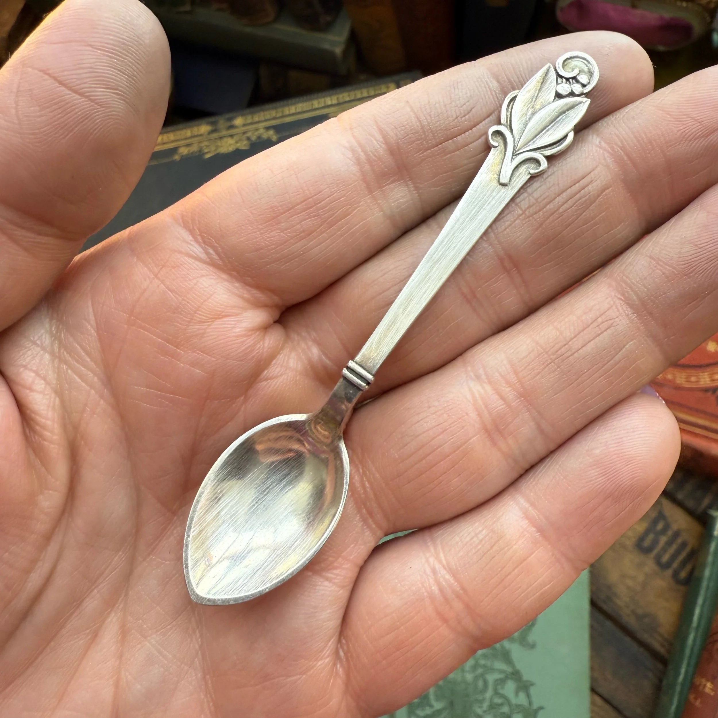 Made from a 4.5 inch demitasse spoon, this pattern sits light and comfortably on the hand with a without feeling overly wide or bulky.