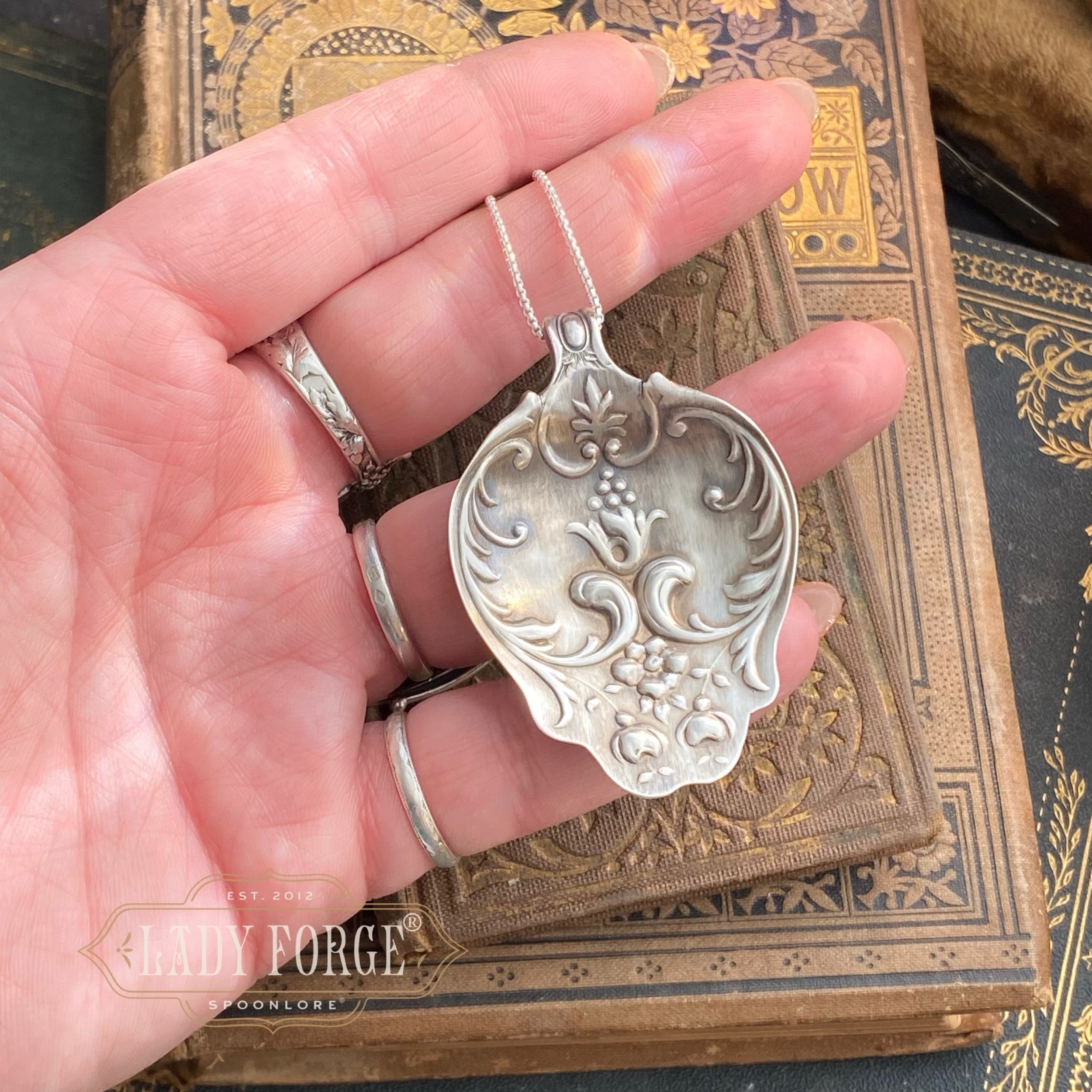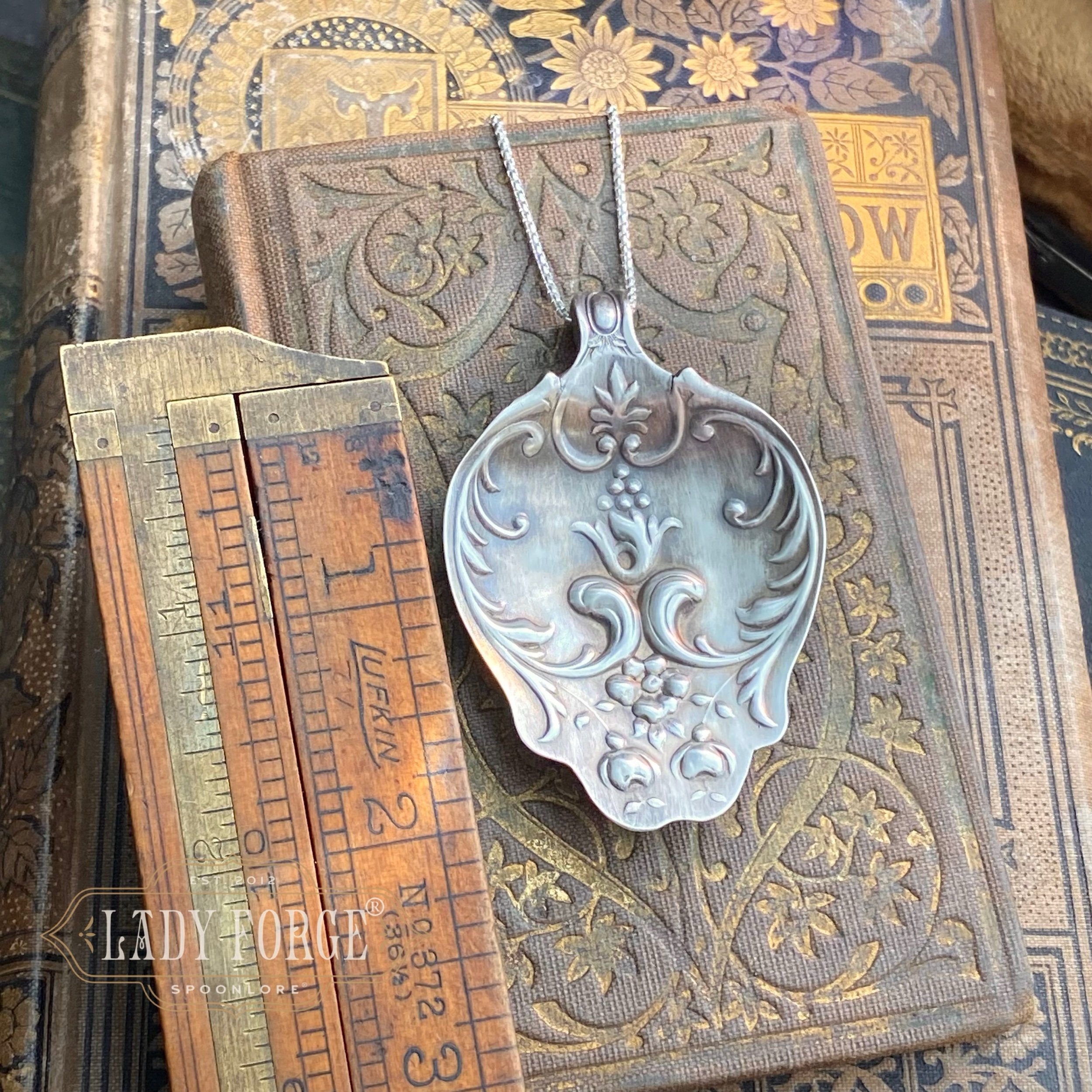 I love spoon jewelry. And I love hunting for the most beautiful spoons to make it! Spoon jewelry is a little wearable piece of history allowing the story and beauty of the pattern to be displayed and treasured, rather than being forgotten in a drawer or melted down as many of these antique beauties are.