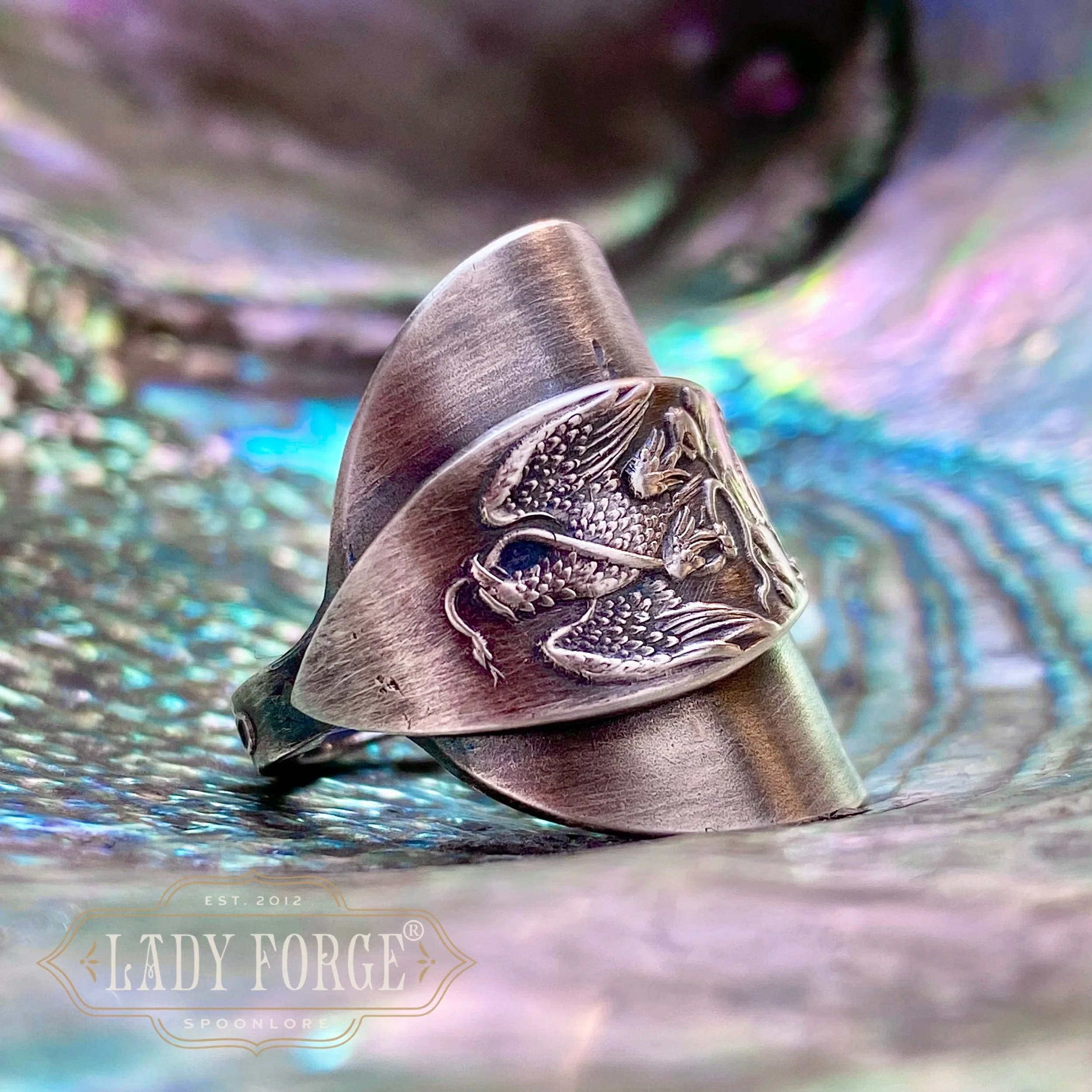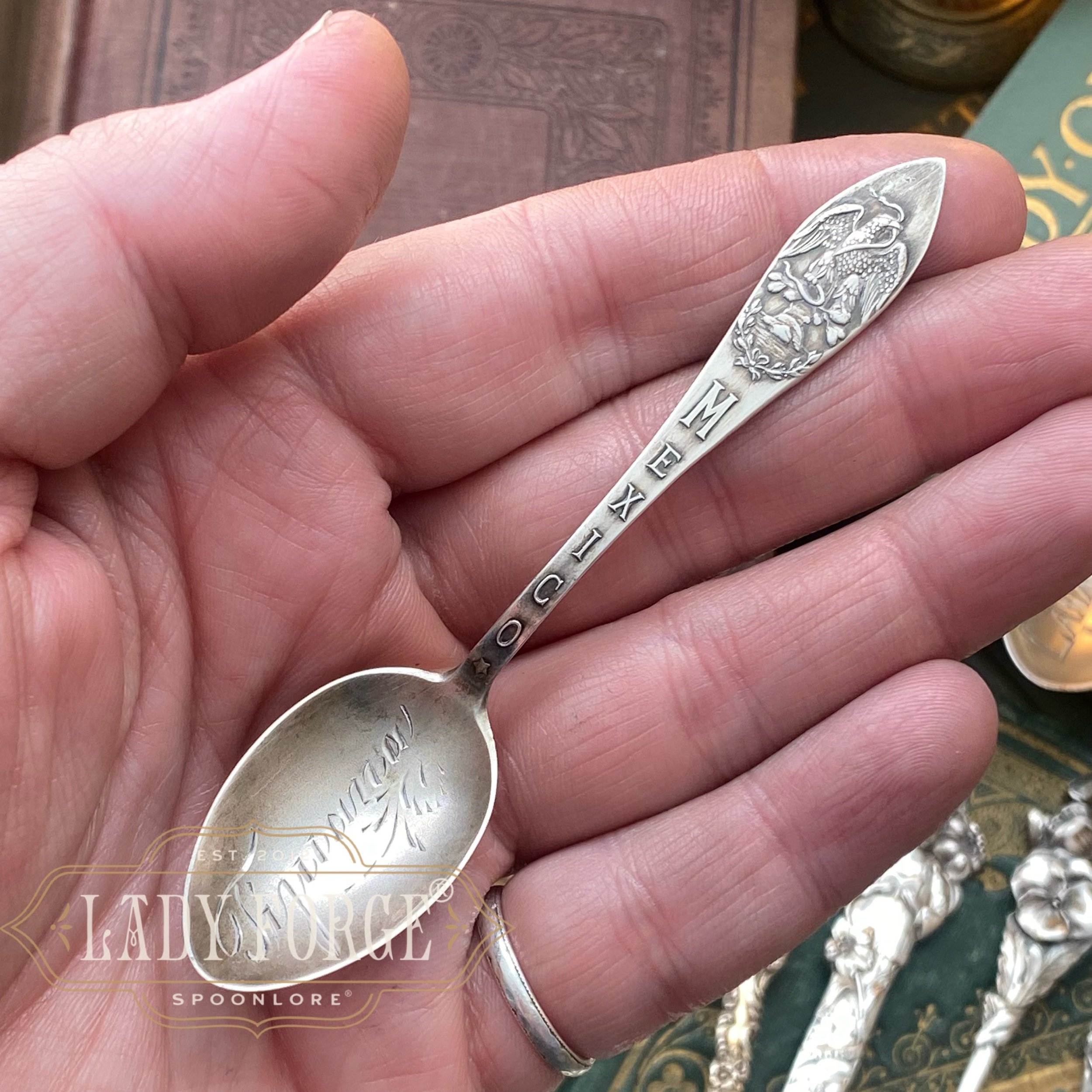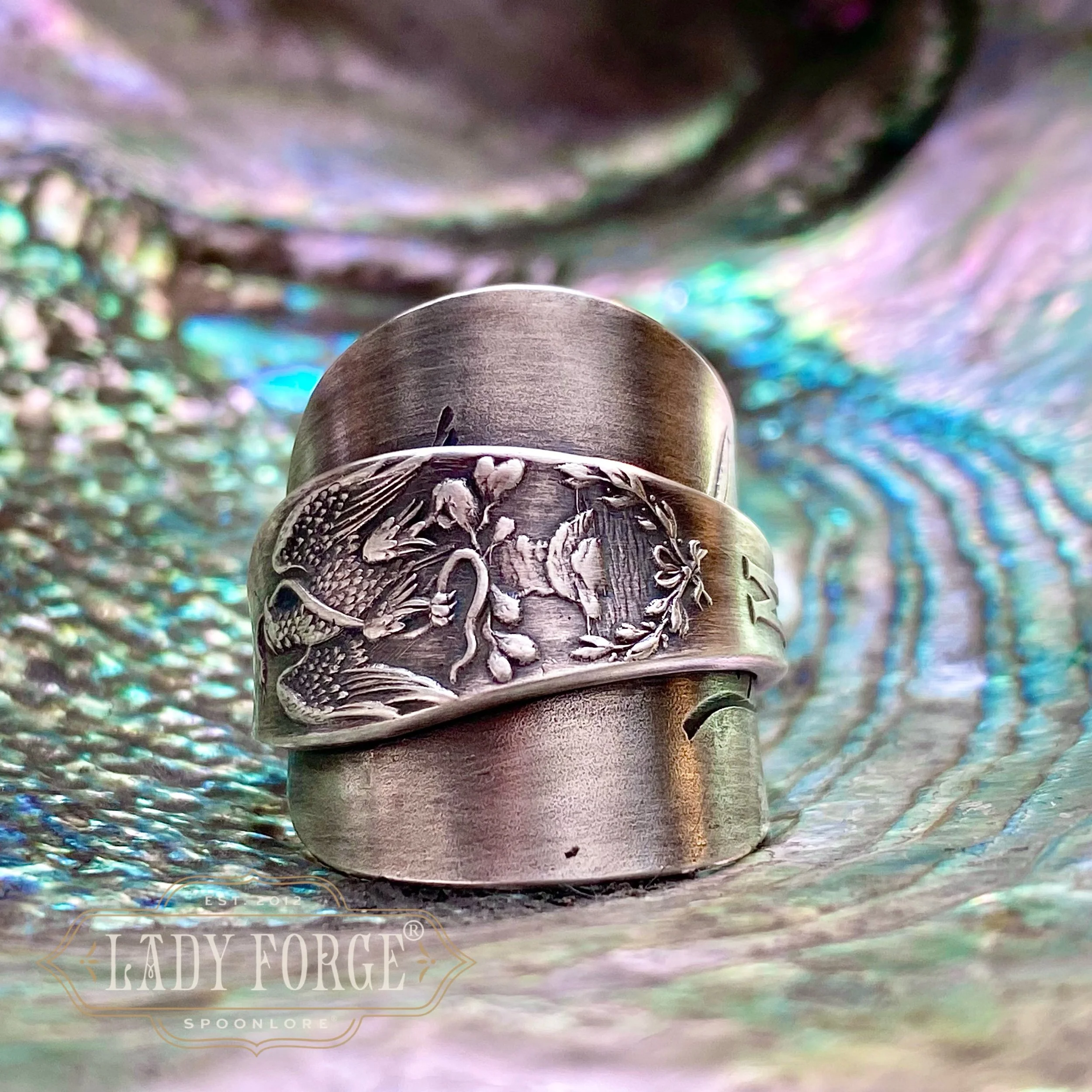 This sterling spoon ring was made from the Mexico pattern designed by the Manchester Co between 1890-1920