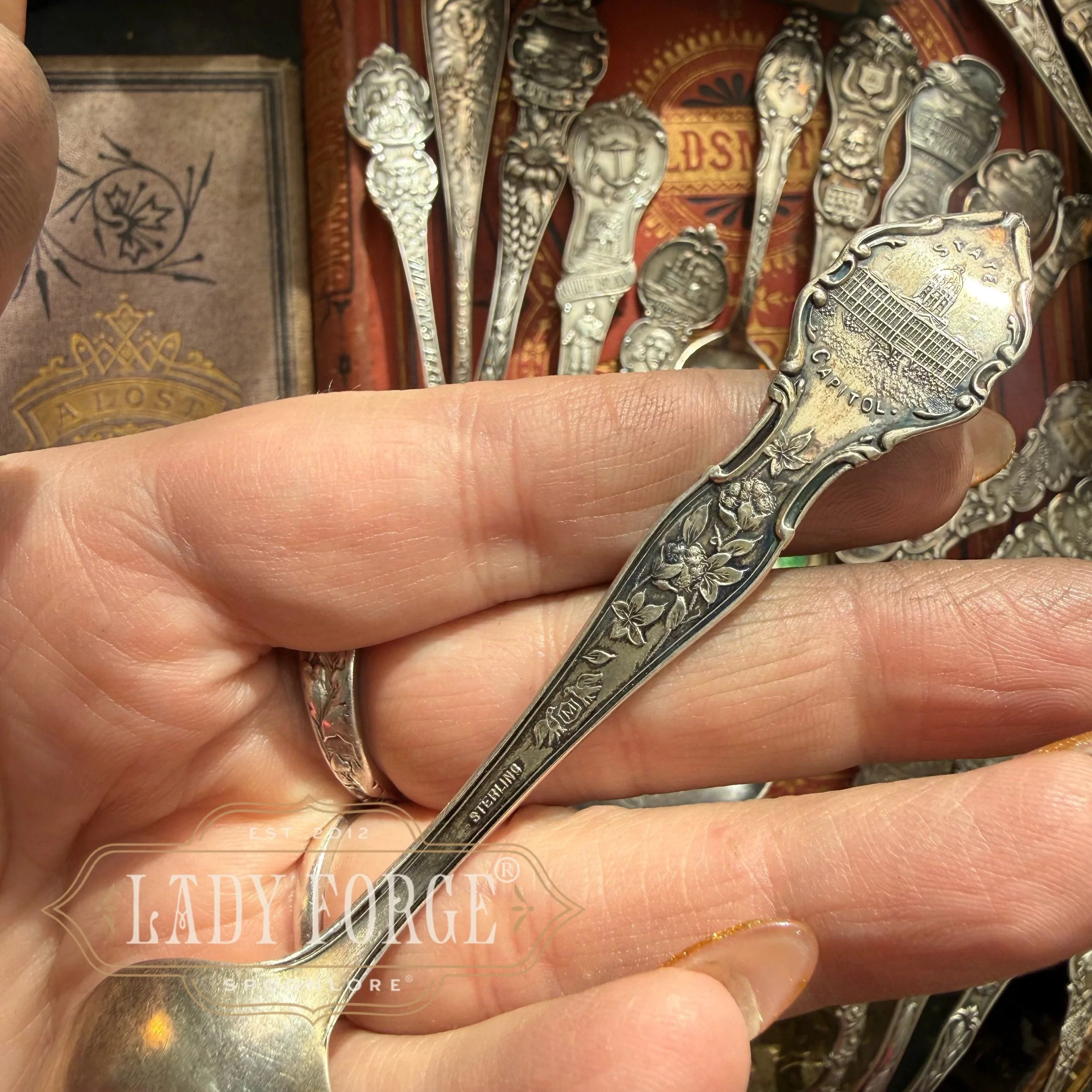 I love spoon jewelry. And I love hunting for the most beautiful spoons to make it! Spoon jewelry is a little wearable piece of history allowing the story and beauty of the pattern to be displayed and treasured, rather than being forgotten in a drawer or melted down as many of these antique beauties are.