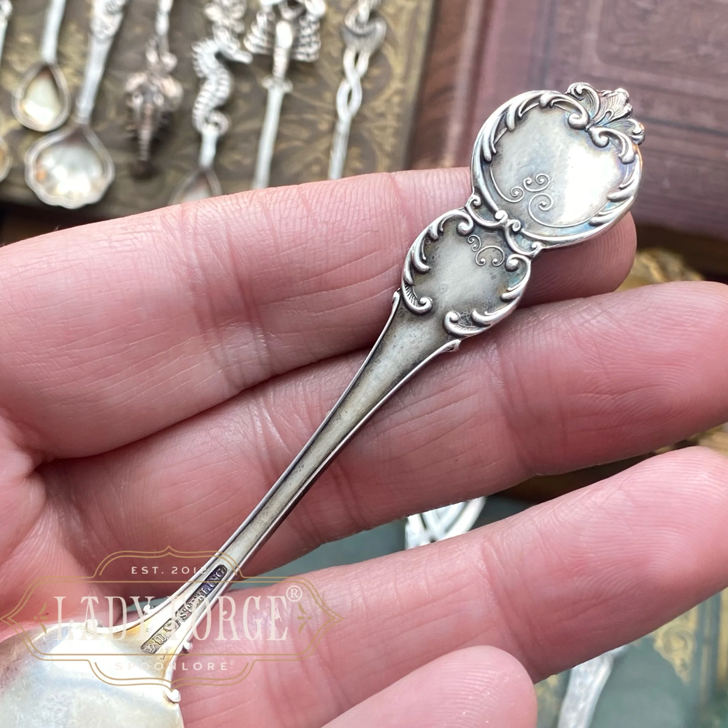 Using the original sterling silverware means each piece is not only beautiful in design, but full of indications that it has lived life. Maybe a faded monogram or little wear spots - I enjoy thinking about the places they have been and who might have held them 100 years ago. Each piece is, therefore, truly unique. I have discovered more than one of some of these spoon patterns, so each piece will come with its own character and story, varying slightly on little wear spots and marks - There will not be two that are exactly the same!